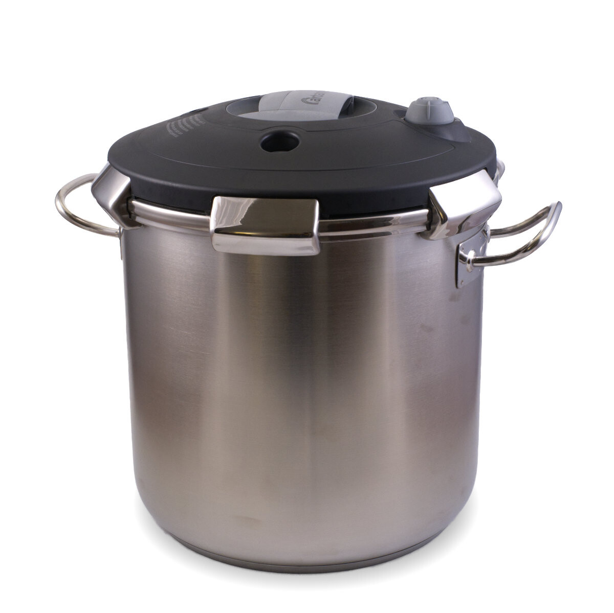 Sachant cela et si vous vivez à moins de 600 m d'altitude, la casserole à pression Artame 23 litres est idéale. Elle est grande, peut être utilisée comme une casserole normale et est fabriquée en Europe.